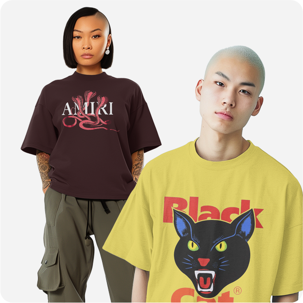We use authentic brand models from Bella + Canvas, Gildan, and Next Level with accurate fit and fabric.
