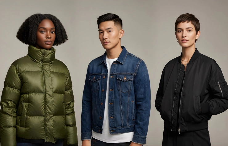 Jacket mockup ideas include puffer, denim, and bomber jackets. These mockups help brands showcase different jacket styles, highlight design details such as stitching, fabric texture, and fit, and present garments effectively for catalogs, e-commerce, or marketing visuals.