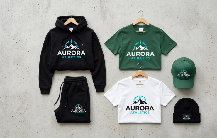 Mockup layouts can also showcase a variety of apparel types by displaying multiple clothing items within a single, organized design presentation. Creators often combine garments such as T-shirts, hoodies, joggers, and caps to visualize a complete streetwear collection. Innovation appears through coordinated color schemes, consistent logo placement, and styled outfit arrangements that help brands present the entire product line as a unified fashion concept.